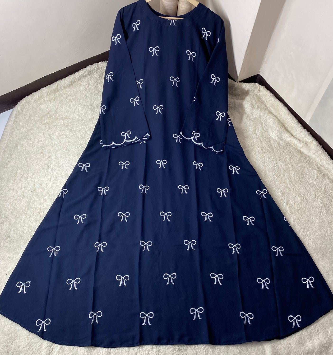 Front Bow Embroidered Georgette Abaya